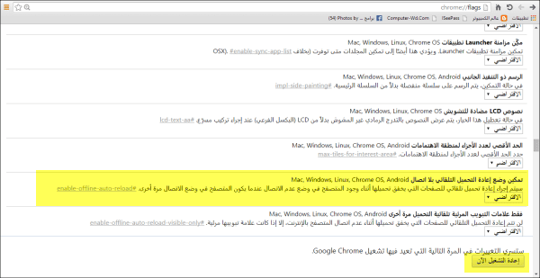 ويمكنك ايضاً الدخول الي هذا الرابط مباشرة في شريط العنوان «chrome://flags/#enable-offline-mode» وبذلك سيتم تفعيل الخاصية مباشرة.